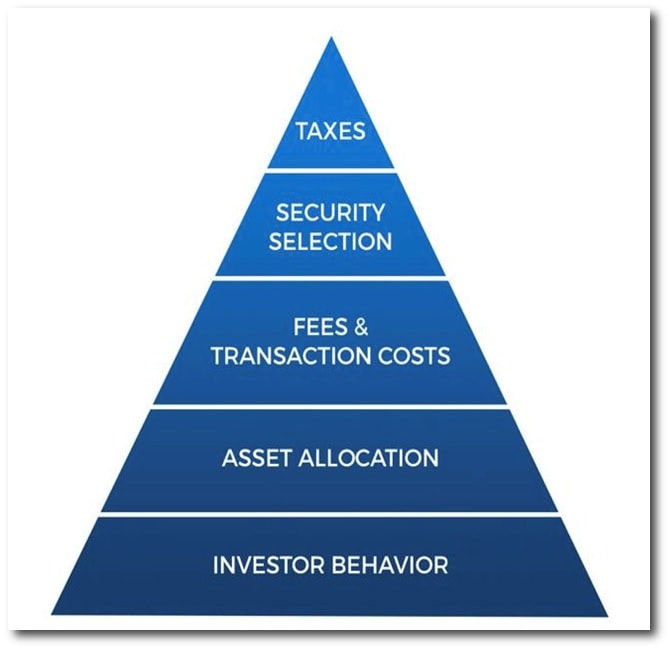 I would like to end my experience by sharing a small diagram that illustrates the various reasons that affect our investments in their order of importance. At the base of the pyramid is investor behaviour, indicating that it has the most impact, while the taxes you pay on the money you earn have the least impact.